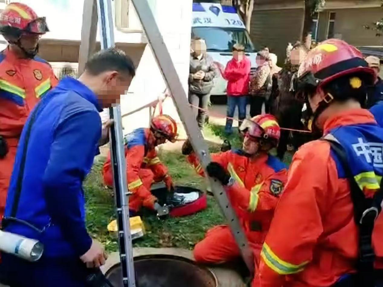 10月22日9时44分,武汉市武东路与青王路交会处某小区,一名六旬白叟踩到井盖后不小心坠入排污井底。武汉市消防救援指挥中心接到报警后,当即调派工人村消防救援站出动1辆消防车、6名消防员赶赴现场救援。